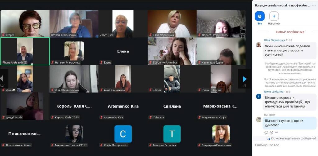 В обговореннях також взяли участь фахівці геріотричних пансіонатів та студенти 1 курсу спеціальності І10 “Соціальна робота та консультування” КПІ імені Ігоря Сікорського.